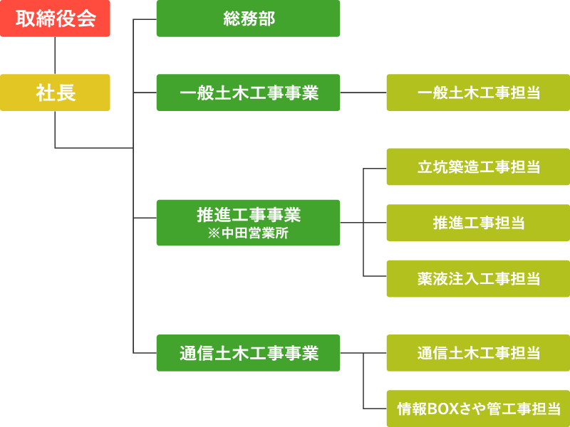 従業員一同、地域発展の鍵を握る高度情報通信社会インフラ整備に、電気・ガス導管・上下水道等の公共公益設備に、さらに大きく貢献してまいります。